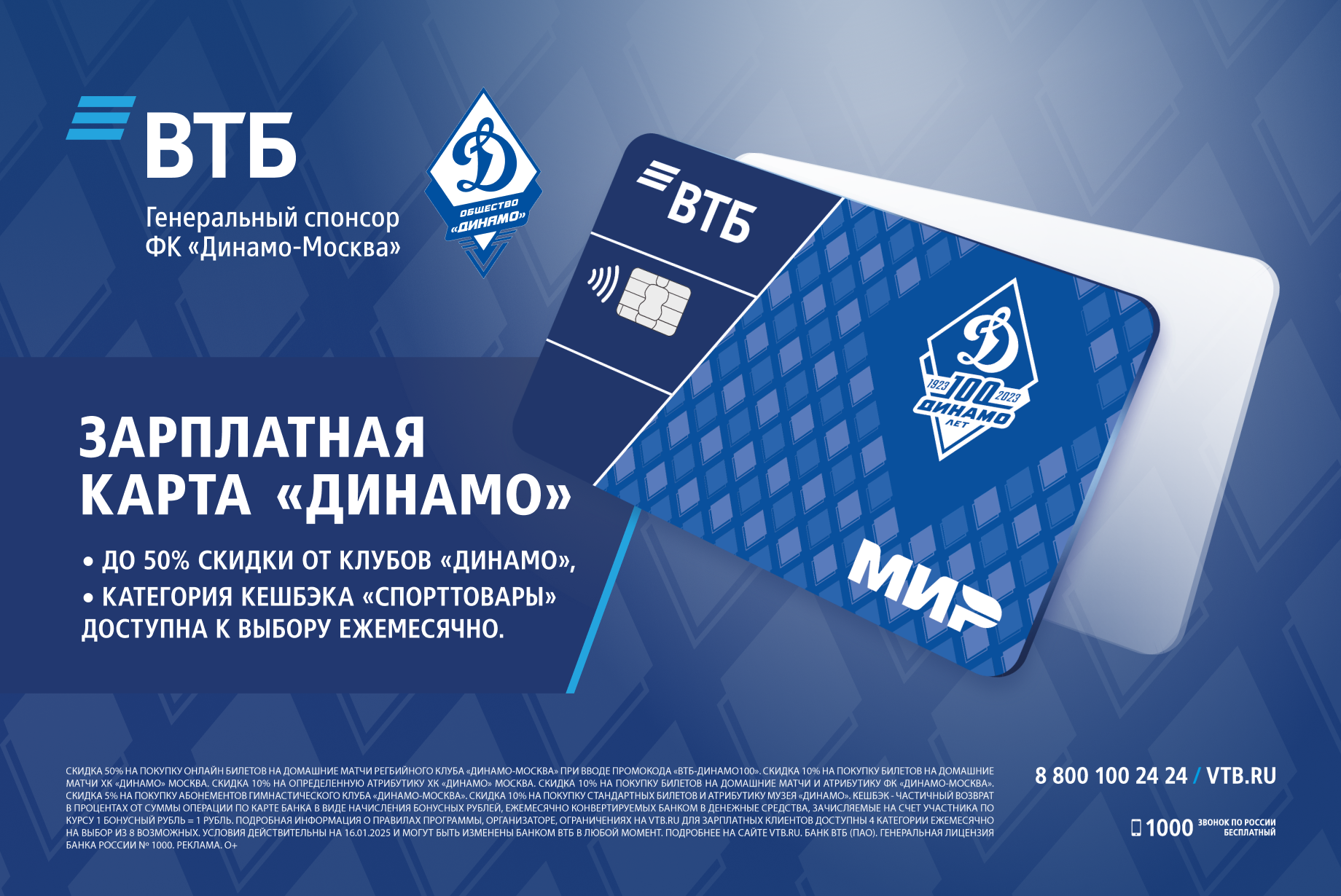 Банк ВТБ, генеральный спонсор клуба, представил зарплатную карту «Динамо» для наших болельщиков.