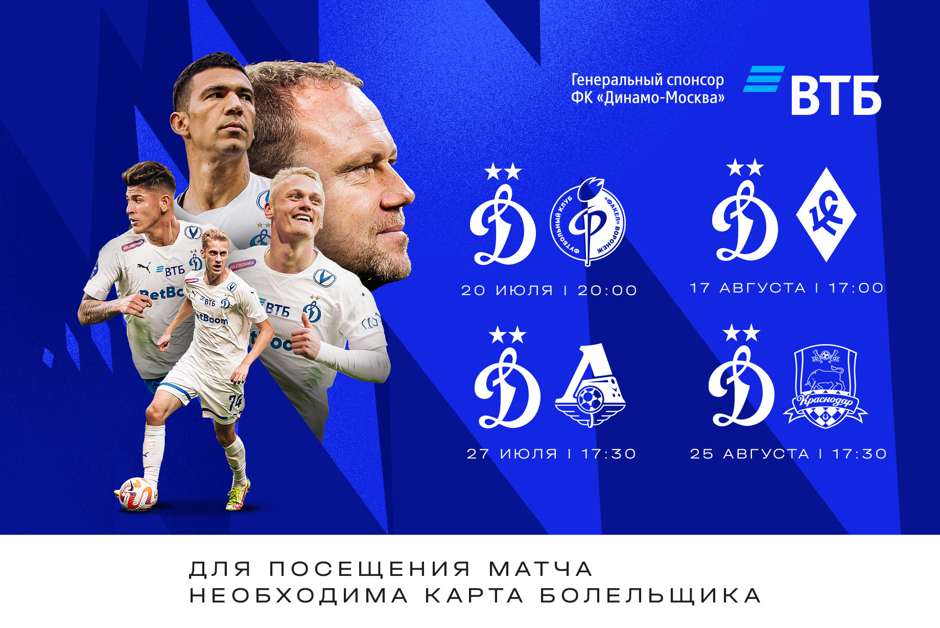 Билеты на летние домашние матчи «Динамо» в РПЛ!